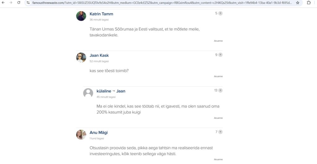Lisatud on ka edukate investorite kommentaarid, et uute kasutajate hirme maandada: